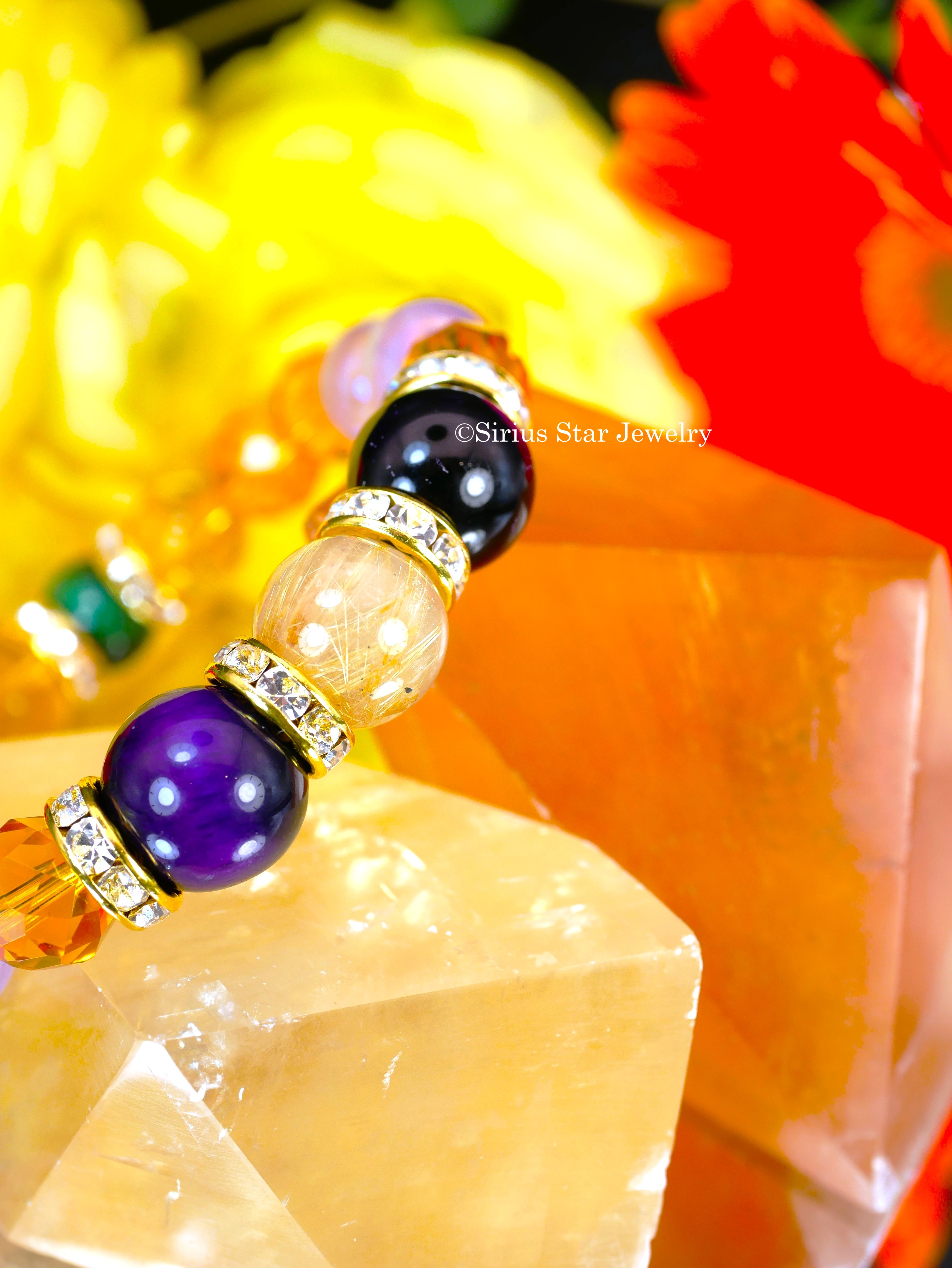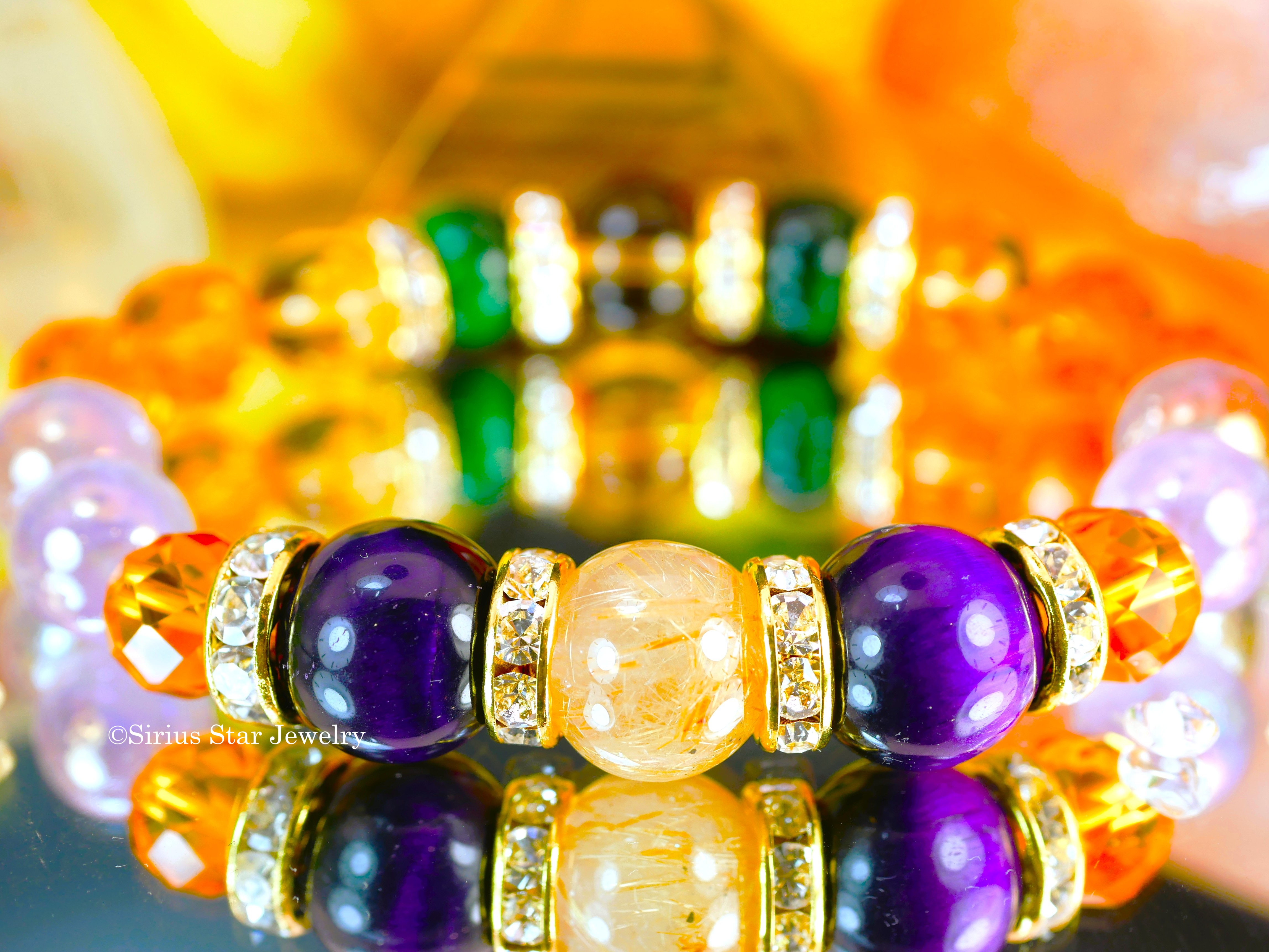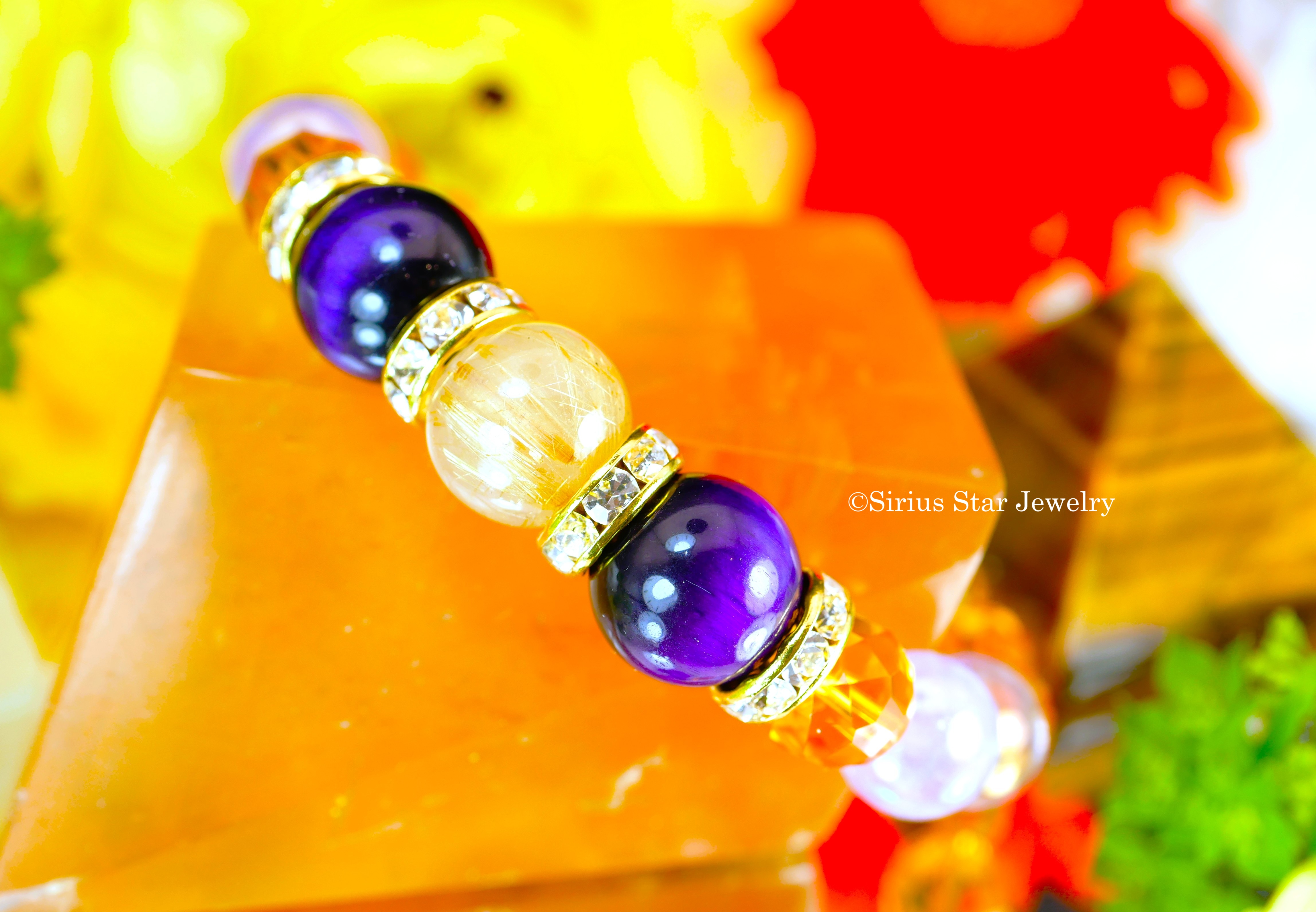 | ブレスレット使用天然石 | ルチルクォーツ、パープルタイガーアイ、グリーンタイガーアイ、シトリン、アメジストオーラ(12~10mm珠使用(誤差がございます)) |