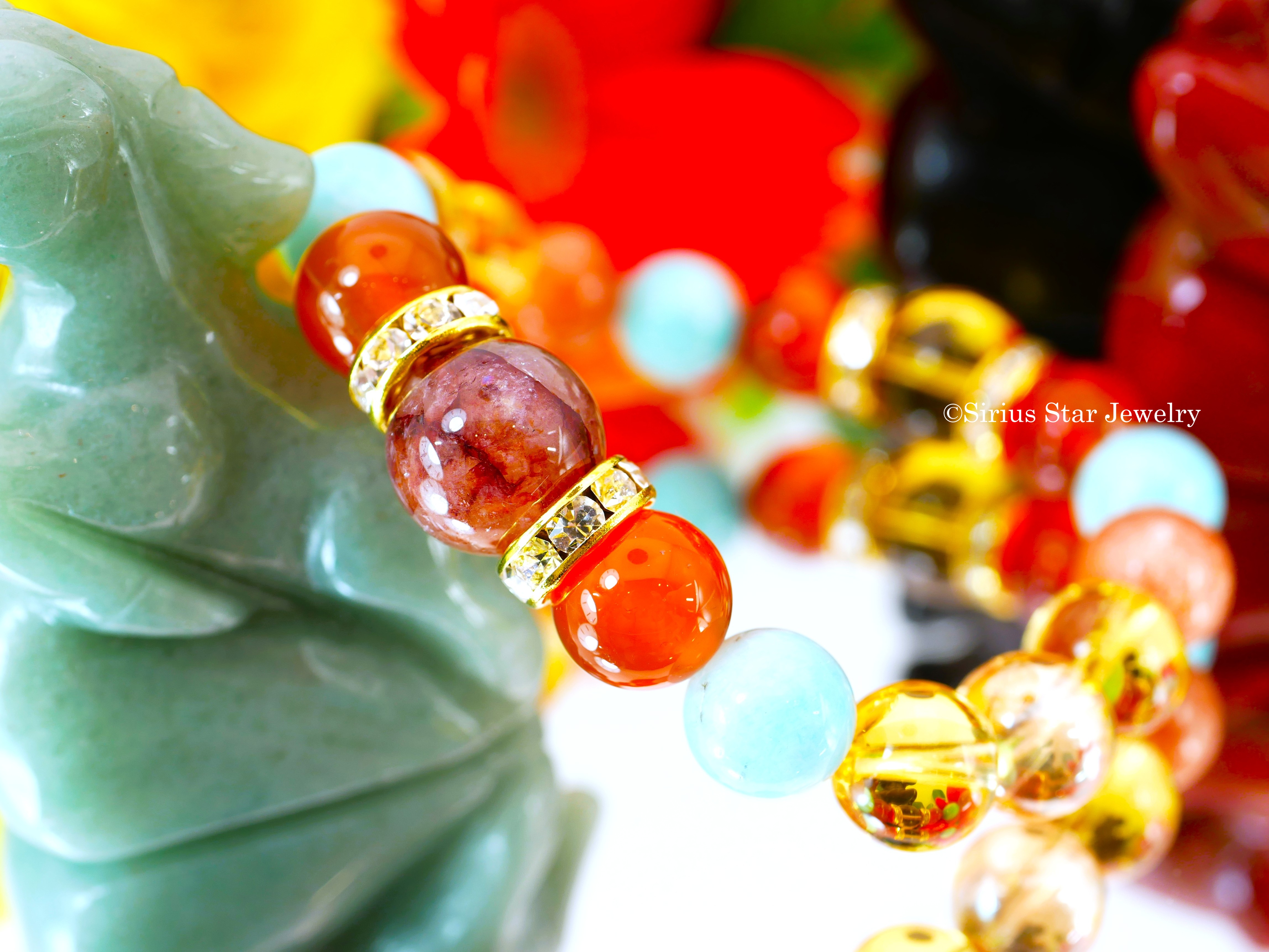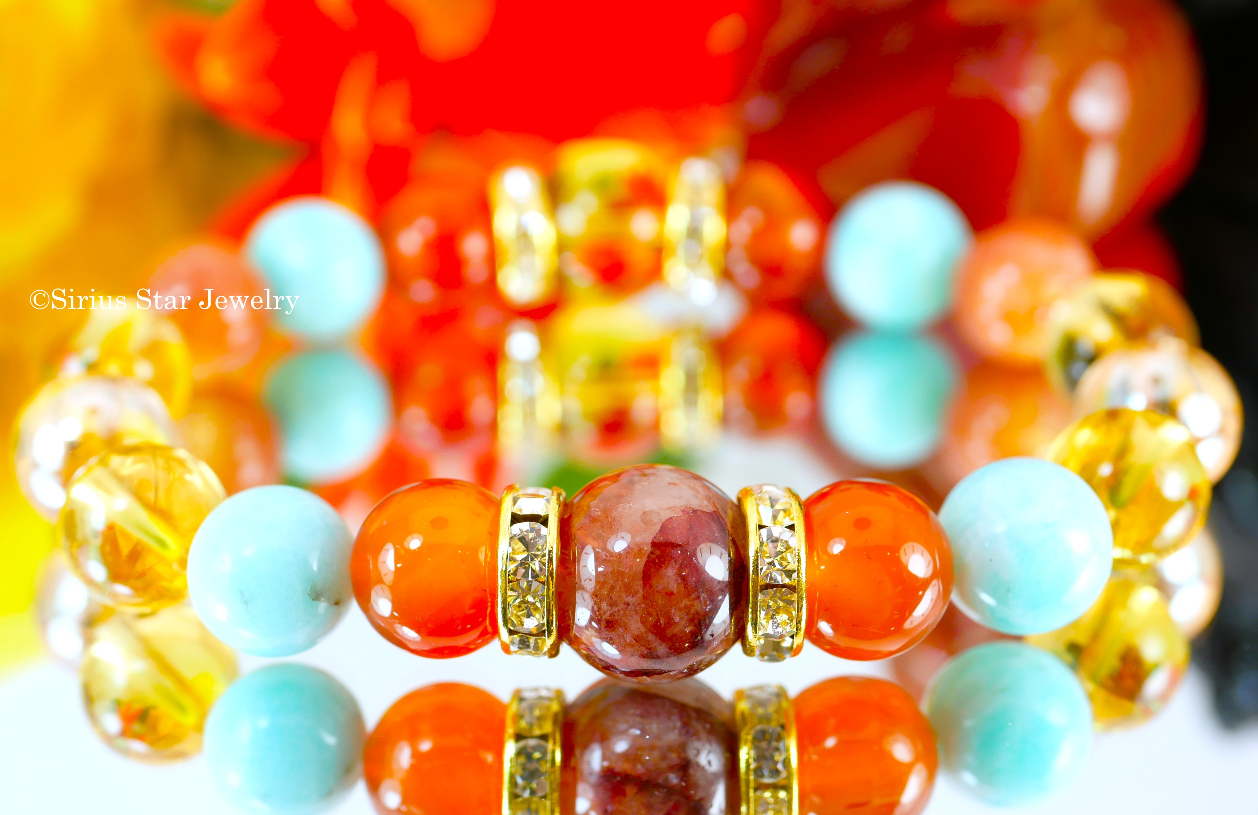 | ブレスレット使用天然石 | 天然オーラクォーツ、シトリン、カーネリアン、サンストーン、アマゾナイト、ゴールデンオーラ(12~10mm珠使用(誤差がございます)) |