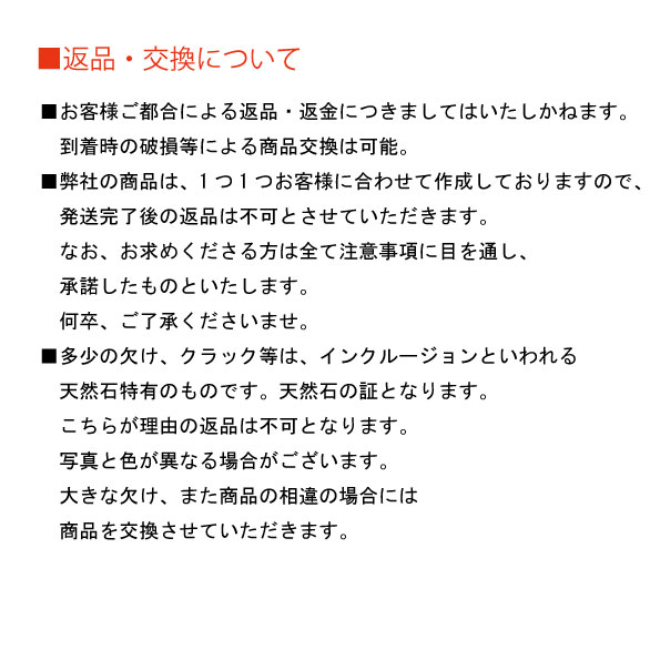 | 使用天然石 | オニキス、天然ターコイズ(今回のターコイズは丸玉となります)、ガーデンクォーツ | (ストーンの種類が変更になる場合がございます) |